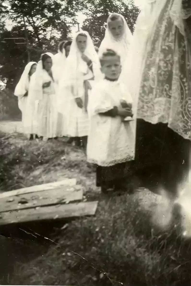1952 - Saluto della comunità parrocchiale a don Francone che lasciava Coassolo per Savigliano