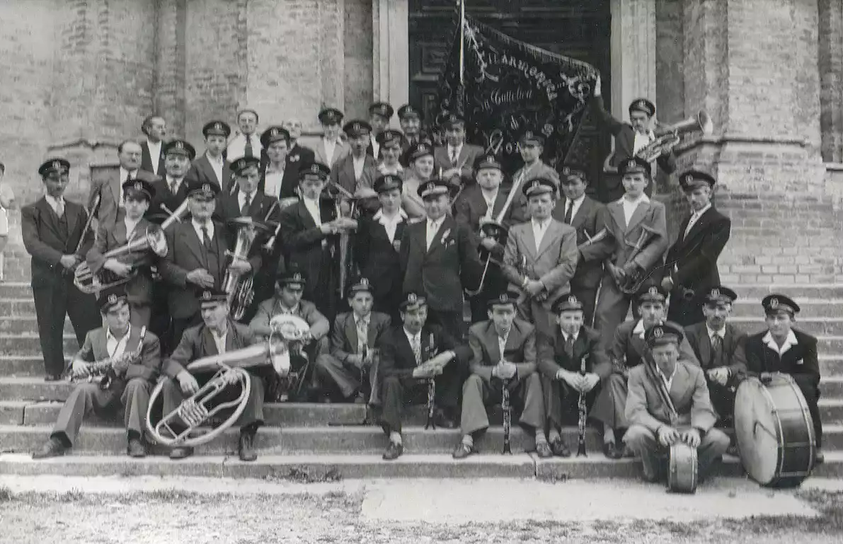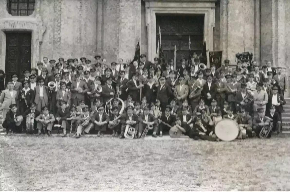 3 settembre 1950 - Foto ricordo del cinquantenario della banda musicale che veniva consegnata alle altre bande musicali che avevano partecipato ai festeggiamenti