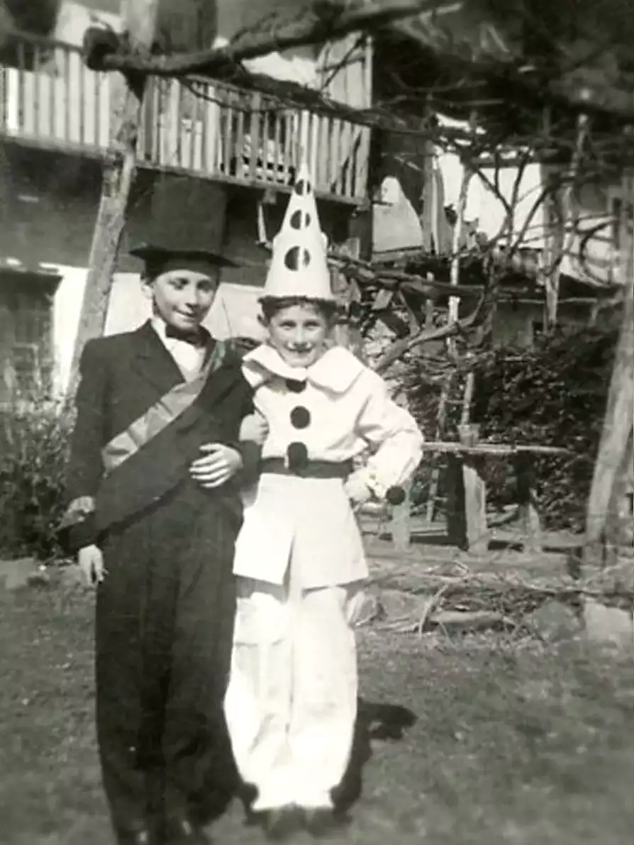 1952 - Carnevale alla frazione Bogno: vestiti con abiti fatti in casa Giovanni Barra (sindaco) e Piero Barra (Pierrot)