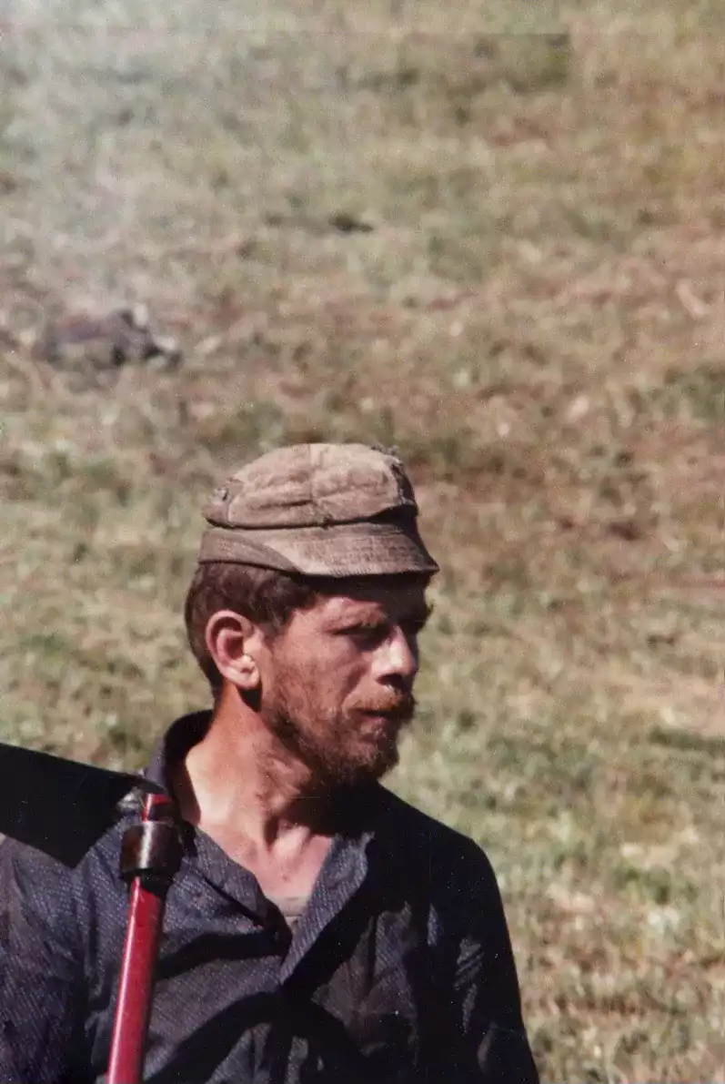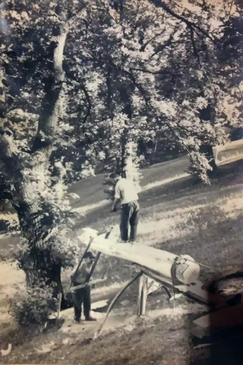 Coassolo 13 luglio 1944 - Foto di Peretti Griva Ricardo: sopra il tronco Perucca Boscarin Pietro, sotto Griglione Domenico detto "Gasu"