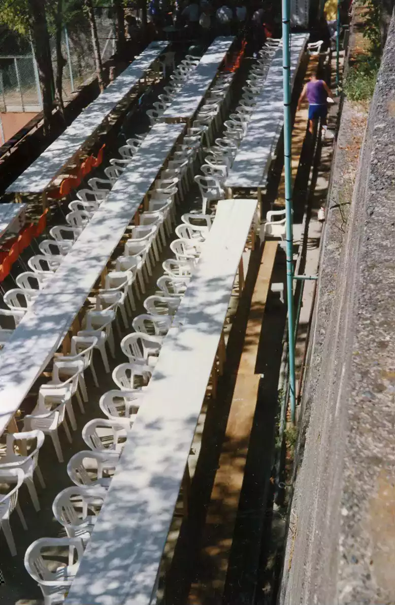 Tavolate pronte nel campo da bocce per una polentata