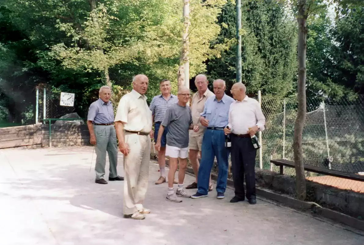 Giocatori di bocce, in primo piano Ernesto Chiapino e Saverio Quadraro