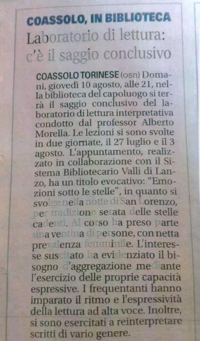 Laboratorio di lettura biblioteca civica 2017
